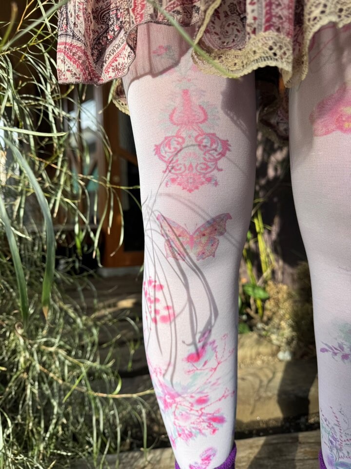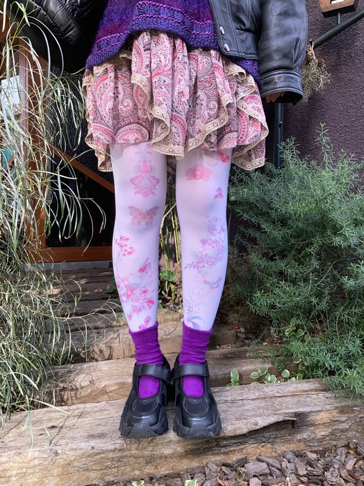 • Some darker illustrations seen in model photos are real tattoos on the model, not part of the stocking design.