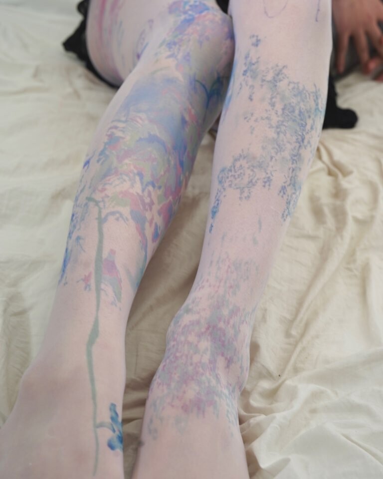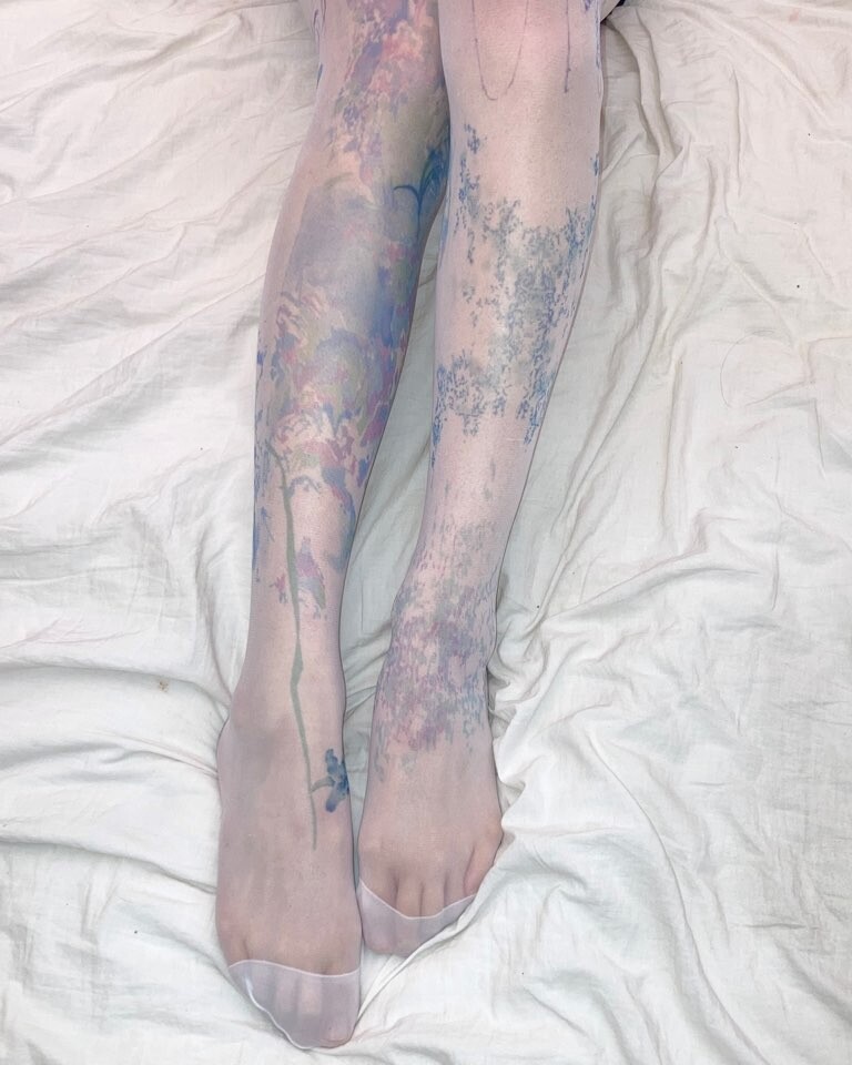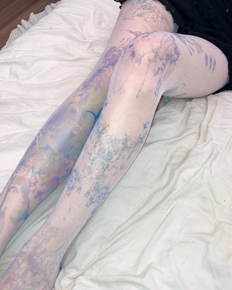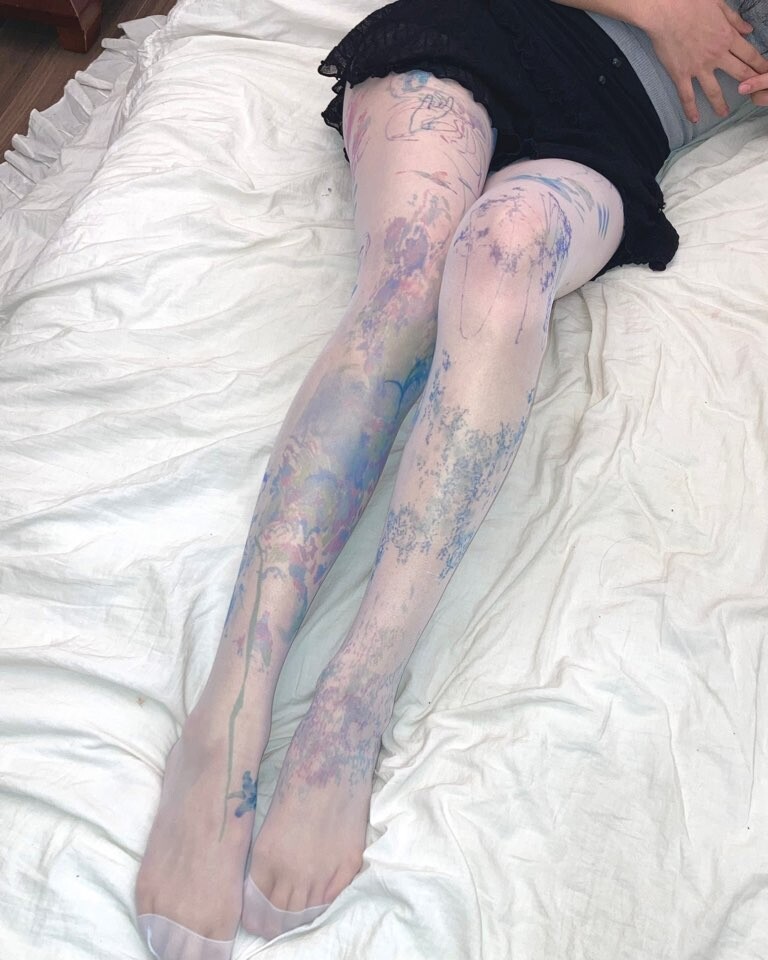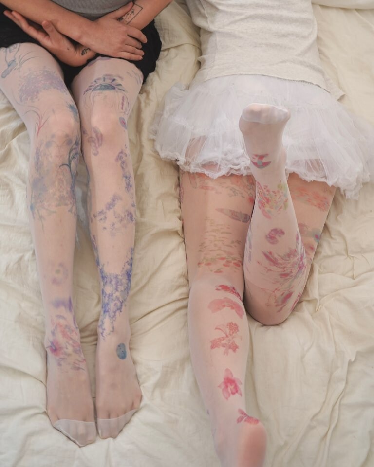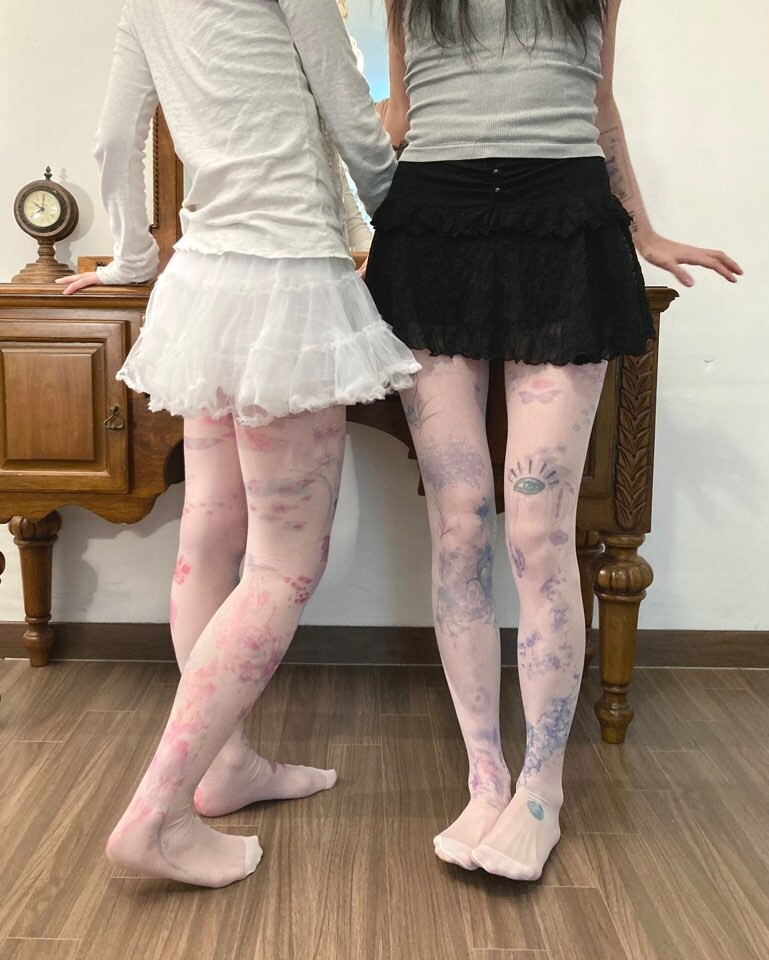 • Some darker illustrations seen in model photos are real tattoos on the model, not part of the stocking design.