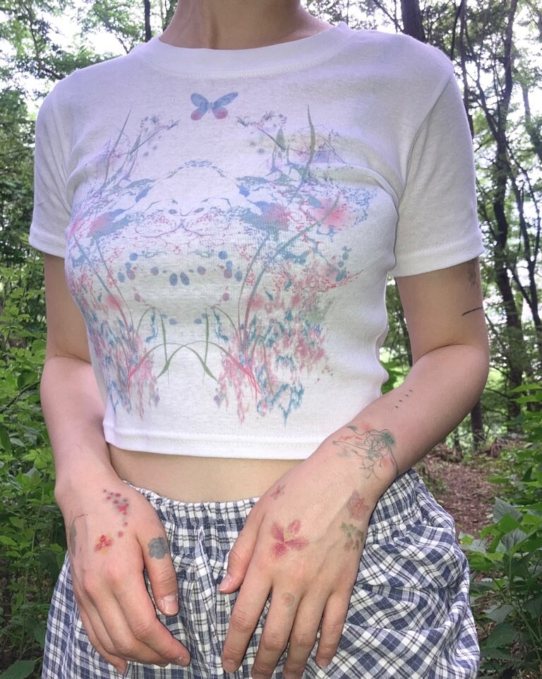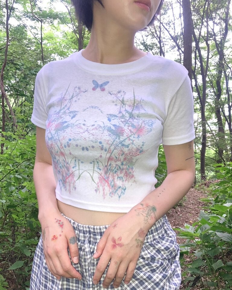 A soft and refreshing crop t-shirt,inspired by the crisp clarity of a morning sky.
